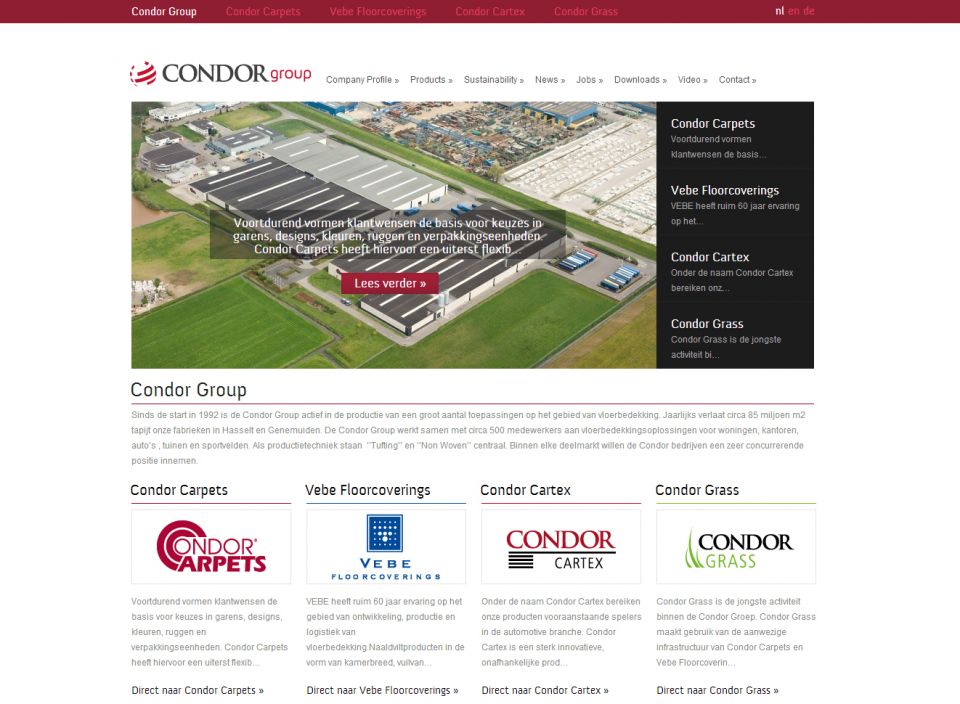 Voor Condor Group, en voor de onderliggende bedrijven, heeft Footsteps nieuwe websites ontwikkeld. Het resultaat is een strak ontwerp met aandacht voor de producten. Naast het ontwerp leverde Footsteps ook het content management systeem om de nieuwe website eenvoudig te beheren. Een belangrijk element is dat elk bedrijf een eigen look and feel zou krijgen en tegelijkertijd een eenheid moet uitstralen. Door het gebruik van een vast stramien met elk eigen huisstijlkleuren is deze doelstelling behaald. Aan de hand van afbeeldingen en video's kan de bezoeker snel een indruk krijgen van de producten die Condor maakt. De detailpagina’s worden ondersteund door close-up-beelden. Op deze website zie je dat de presentatie van producten een belangrijk element is.